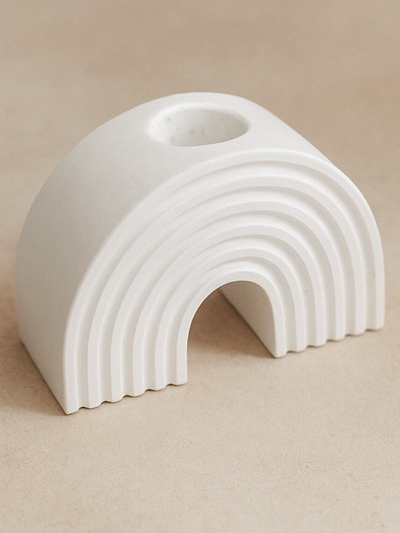 De inspiración arquitectónica y líneas suaves, el candelabro Arch está elaborado en resina con acabado mate. Su silueta arqueada y textura delicada aportan armonía y carácter a cualquier espacio. Una pieza escultórica que combina funcionalidad y diseño contemporáneo.
