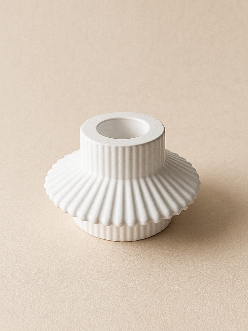 De líneas suaves y textura acanalada, el candelabro Rhea está elaborado en resina con acabado mate. Su diseño escultórico aporta calidez y equilibrio a cualquier espacio, combinando sencillez y carácter en una sola pieza. Perfecto para velas tipo stick o como detalle decorativo por sí solo.